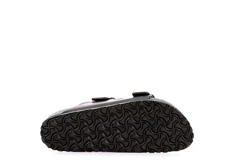 A true pioneer of laid-back comfort, the Arizona women’s sandal by Birkenstock features the original footbed with pronounced arch support, a roomy toe box, and a deep heel cup. Two trendy wide straps with buckles provide an adjustable fit on these all black Birkenstocks.