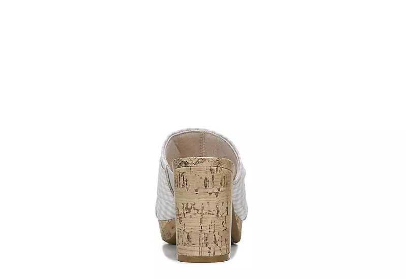 Looking to expand next season’s styles? Add the LifeStride Laguna women’s platform sandal. With a gingham fabric upper featuring a knotted accent at the vamp, this slip-on shoe even has a cute peep toe and cork-wrapped outsole. The Soft System cushioning comforts your foot while platform and 3 1/2″ heel offer stable lift for fun times in the sun.
